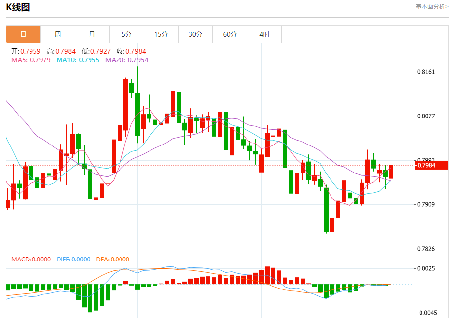 周三纽盘,瑞郎兑美元交投于0.7985,涨幅为0.25%。