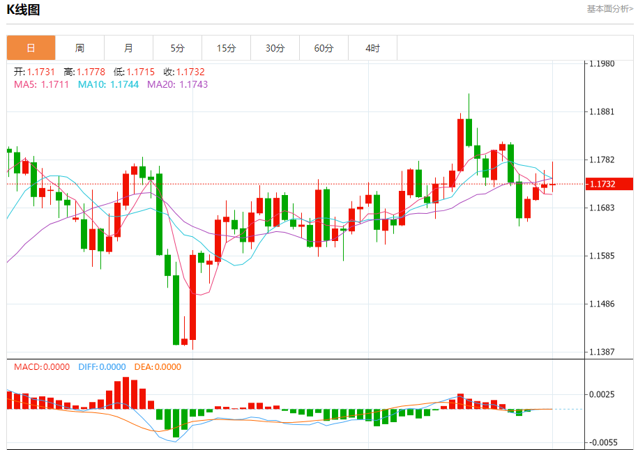 今日周三,截止目前欧元兑美元报1.1734,上涨0.01%。