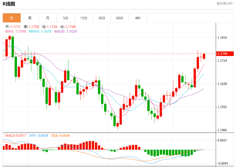 今日周五,截止目前欧元兑美元报1.1724,下跌0.12%。