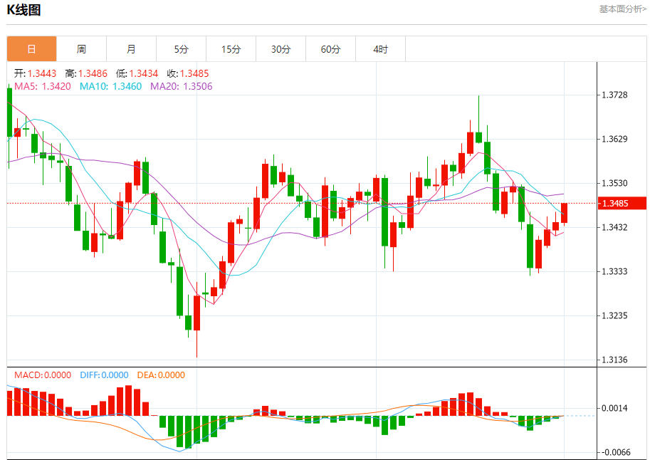 周三欧市盘中,英镑兑美元交投于1.3487,涨幅为0.31%。