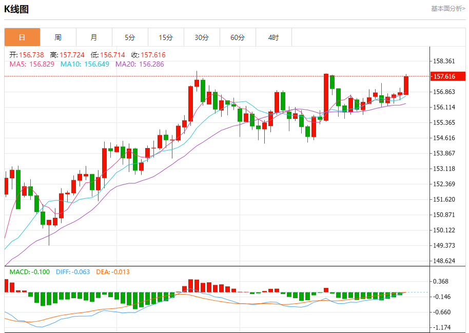 4小时图上的100期简单移动平均线(SMA)温和上升至156.31,显示出持续的上升偏向。美元兑日元对维持在该指标上方,平均线即为动态支撑。移动平均收敛背离线(MACD)位于信号线上方并回落至正区间,直方图略有扩展,强化了动能的改善。相对强弱指数(RSI)位于62,显示出强烈的买入压力,但没有超买条件。如果动能持续,货币对可能继续上线,而回调则使100 SMA成为焦点。