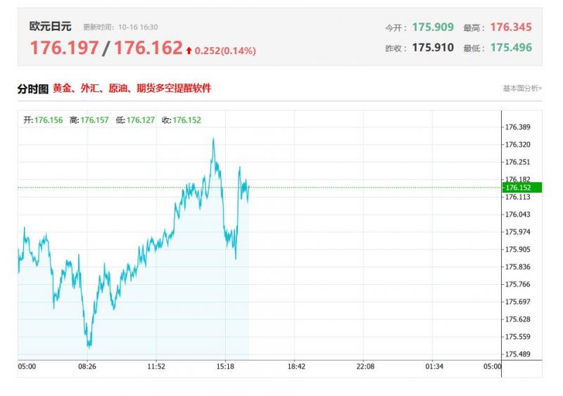 周四盘中,欧元/日元报175.97, 涨幅0.14%.