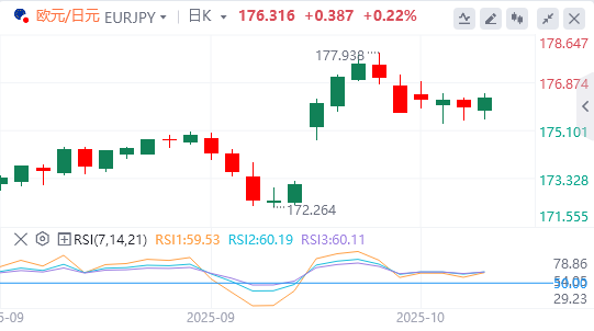 10月16日,欧元/日元在176.30附近走高,周四当日上涨0.20%,因为风险偏好的小幅反弹限制了对日元的需求,而该货币对则受益于欧元的温和复苏。