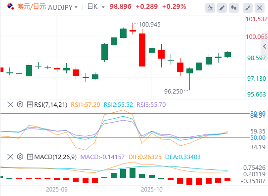 10月23日,周四欧洲早盘,澳元/日元连续第五天在98.85附近交叉交易。结束中美贸易战休战的希望为中国代理澳元兑日元(JPY)提供了一些支撑。