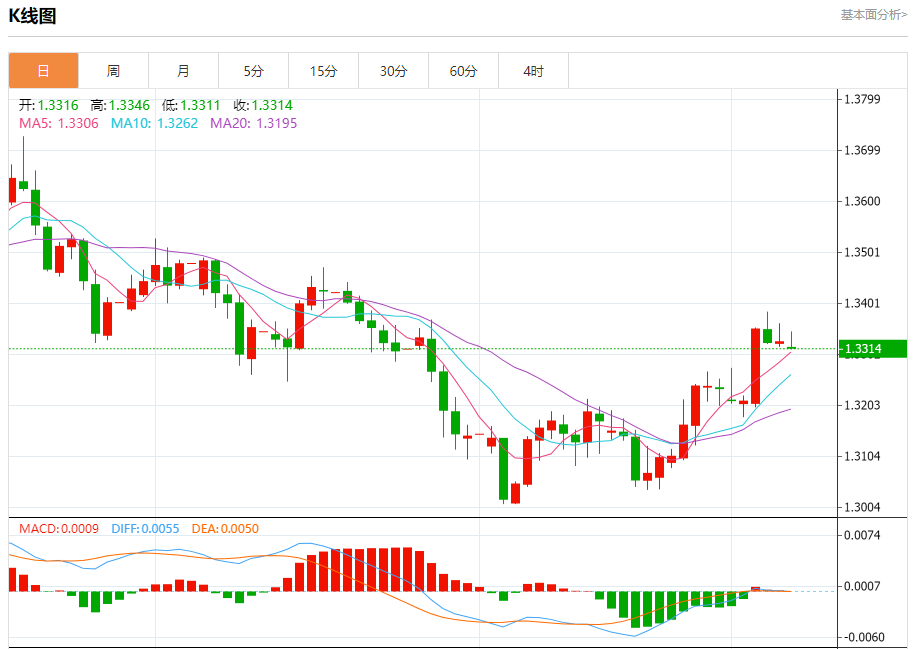 支撑位:1.3310 1.3290 1.3270