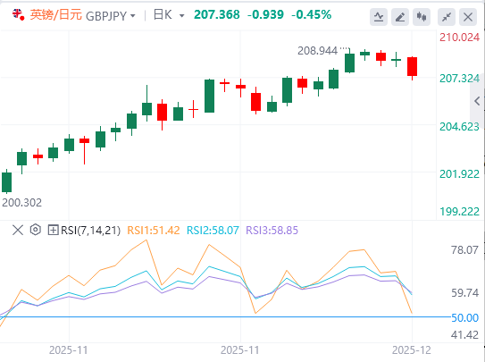 与此同时,英镑(GBP)在公布截至十月的三个月劳动力市场数据前,整体表现平稳。数据预计将显示失业率升至5.1%,扣除奖金的平均收入则温和增长4.5%。失业率上升和工资增长放缓的迹象将提升英国央行周四货币政策会议上降息的预期。