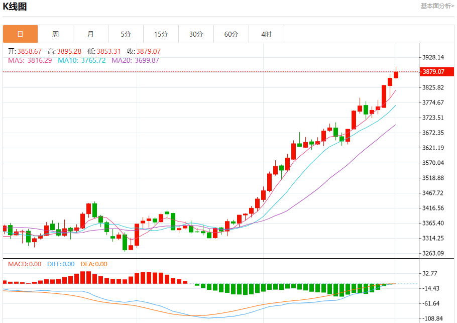 现货黄金:截止北京时间20:23,现货黄金上涨,现报3876.28,涨幅0.47%。纽市盘前,(黄金)价格在其盘中水平上有史以来第一次接近3,900美元的阻力障碍,受到其在EMA50上方的持续交易的支持,并在短期基础上的主要看涨趋势和沿斜线交易的主导下,此外,相对强度指标上出现了积极信号,尽管达到了超买水平,这减少了即将到来的收益。