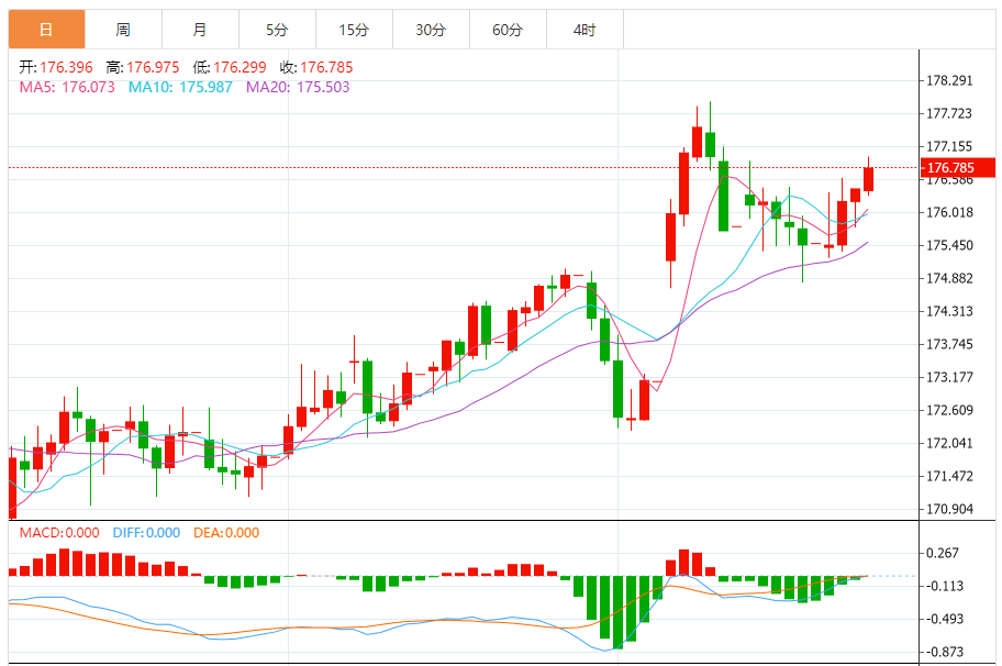 今天的预期交易范围:在176.25和177.85之间