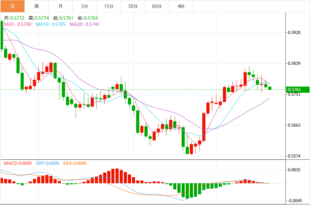 RSI在64.83依然多头,但没有超买条件,进一步强化了上涨的基调。只要美元兑日元维持在上升的200日均线上方,动能将持续,收盘盘可能转向盘整。