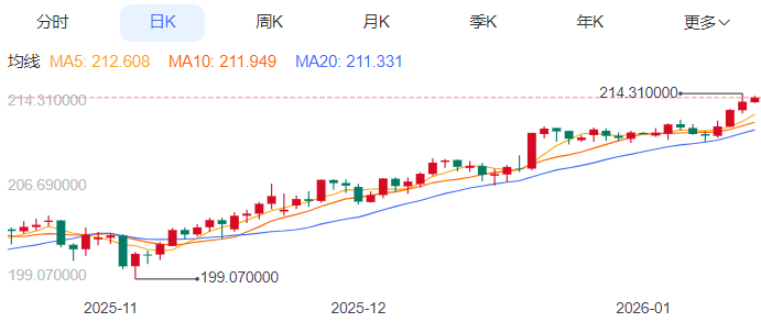 周三,英镑/日元上涨0.17%至213.98附近。