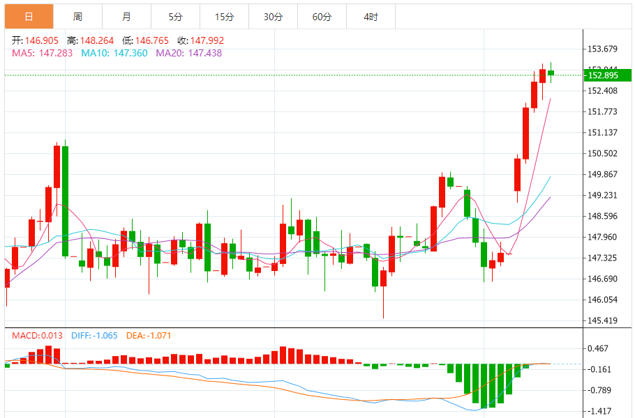 周五(10月10日),美元/日元下跌152.880,暂报152.873,跌幅0.13%。