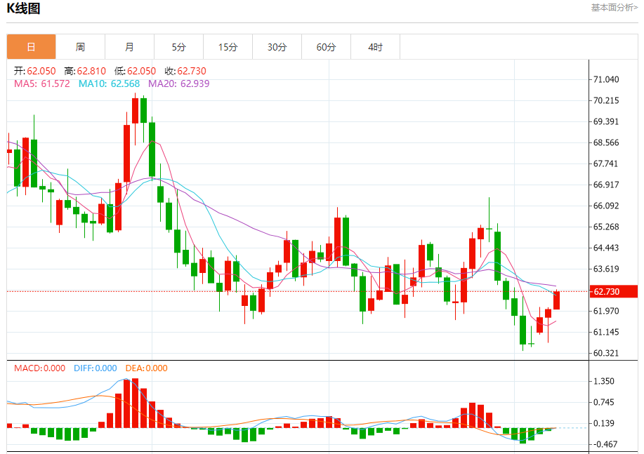 原油市场:截止北京时间20:23,美油上涨,现报62.740,涨幅1.64%。纽市盘前,原油价格最近在盘中上涨,再次稳定在61.50美元上方,这是试图在未来一段时间内实现更多收益的迹象。这种上涨得到了相对强弱指标的积极信号的支持,在之前的走势中摆脱了超买状态,为看涨轨道开辟了道路。