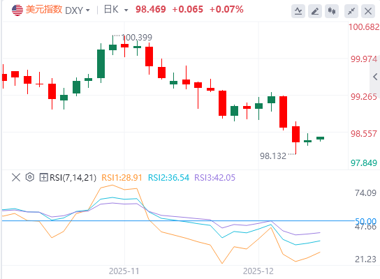 美元指数:截至发稿,美元徘徊在98.46附近。尽管大多数人选择开始放松政策,但持异议的声音表明对通胀的信心远未完全,这提醒人们,美国利率的未来道路可能仍然不平坦,并高度依赖数据。技术面上,如果美元指数能够回落到98.50以上,将朝最近的阻力位方向前进,该阻力位于98.85至99.00区间。