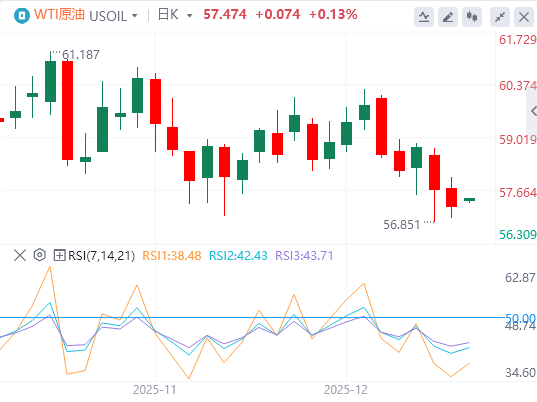 周一亚盘,原油交投57.47附近。基本面条件对多头依然不利。美国的生产继续保持接近历史高水平,而俄罗斯出口流在制裁和物流摩擦下依然展现出韧性。亚洲炼油商仍可获得伊朗和委内瑞拉的折扣桶,增加了全球供应。这些因素综合起来强化了短期供应超过消费需求的观点,即使在大幅抛售后也限制了后续买进兴趣。