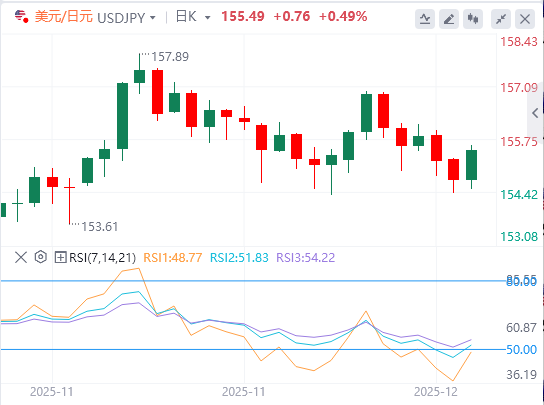 周二,美国劳工统计局(BLS)首次发布了自美国政府重新开放以来的官方就业报告。该报告显示,非农就业人数在十月减少了10.5万,而在十一月增加了6.4万。十一月失业率从4.4%微升至4.6%,而同期的年工资通胀率也从3.7%降至3.5%。美元指数在最初的反应中跌至自十月初以来的最低水平,跌破98.00,随后在美国交易日晚些时候收复了大部分跌幅。周三早些时候,美元指数将上涨至98.50。在当天的下半段,多位美联储决策者将发表演讲。