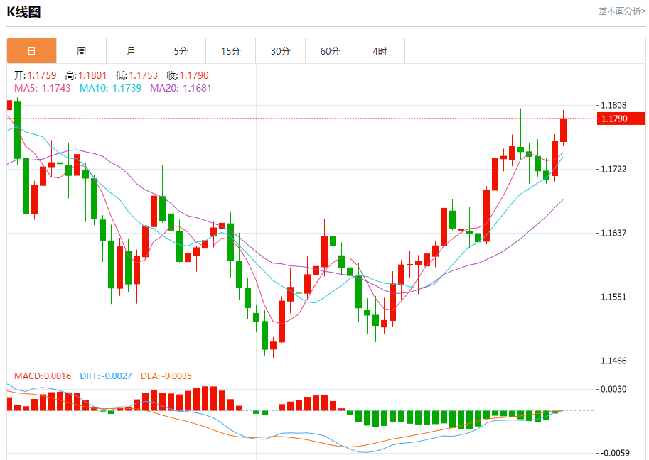欧元/美元:截止北京时间21:20,欧元/美元上涨,现报1.1792,涨幅0.27%。纽市盘前,(欧元兑美元)的价格在最后一个交易日上涨,准备攻击1.1800的关键阻力,该阻力代表了我们在之前的分析中的预期目标,利用了其在EMA50上方交易所代表的动态支撑,加强了短期主要看涨趋势的稳定性和主导地位,特别是其沿着趋势线交易,除了相对强度指标上出现积极信号之外,尽管达到了超买水平。