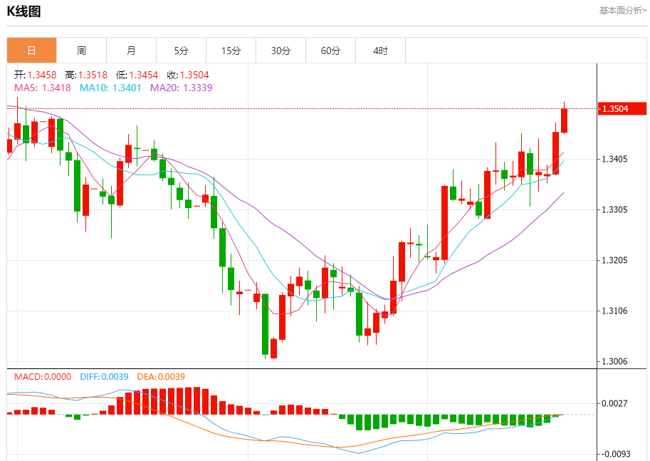 英镑/美元:截止北京时间21:20,英镑/美元上涨,现报1.3507,涨幅0.35%。纽市盘前,GBPUSD在最后一个交易日继续上涨,突破了1.3435的关键阻力,这一阻力代表了我们之前分析的目标,其在EMA50上方交易所代表的动态支撑仍在继续,短期内主要看涨趋势占主导地位,其沿着该趋势的支撑趋势线交易,除了相对强度指标出现积极信号外,尽管其稳定在超买水平。
