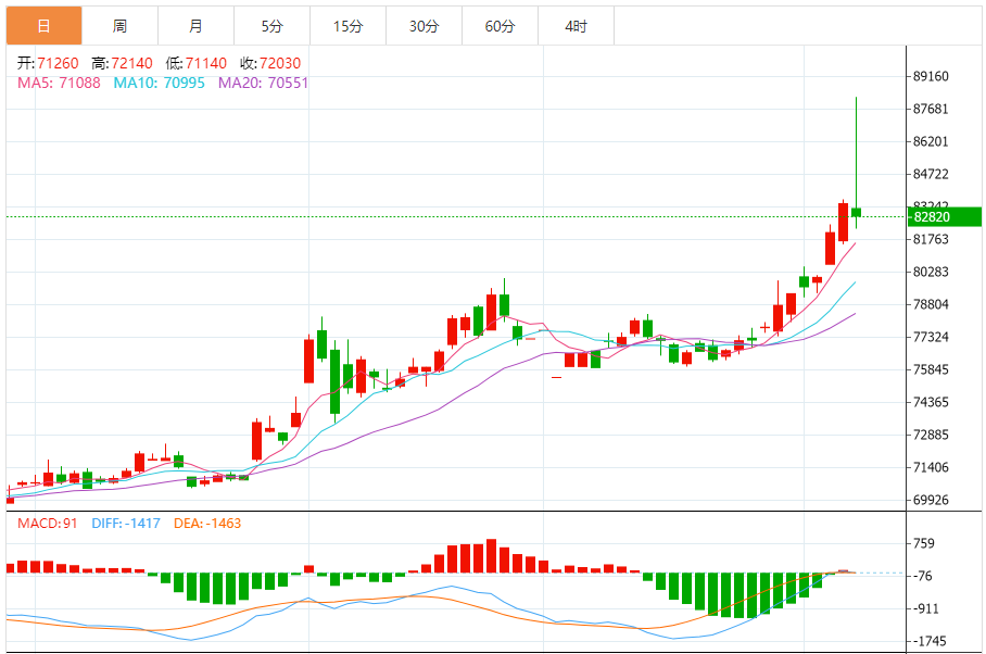 【关键指标】日线KDJ指标高位死叉向下,从82回落至65,超买风险显著释放;MACD能量柱同步缩减,显示多头动能衰减。现货白银与黄金的比价回落至8.6(黄金/白银),较前期高点9.2有所修复,工业属性对银价的拖累逐步显现——全球光伏装机增速不及预期,白银工业需求增长受限。