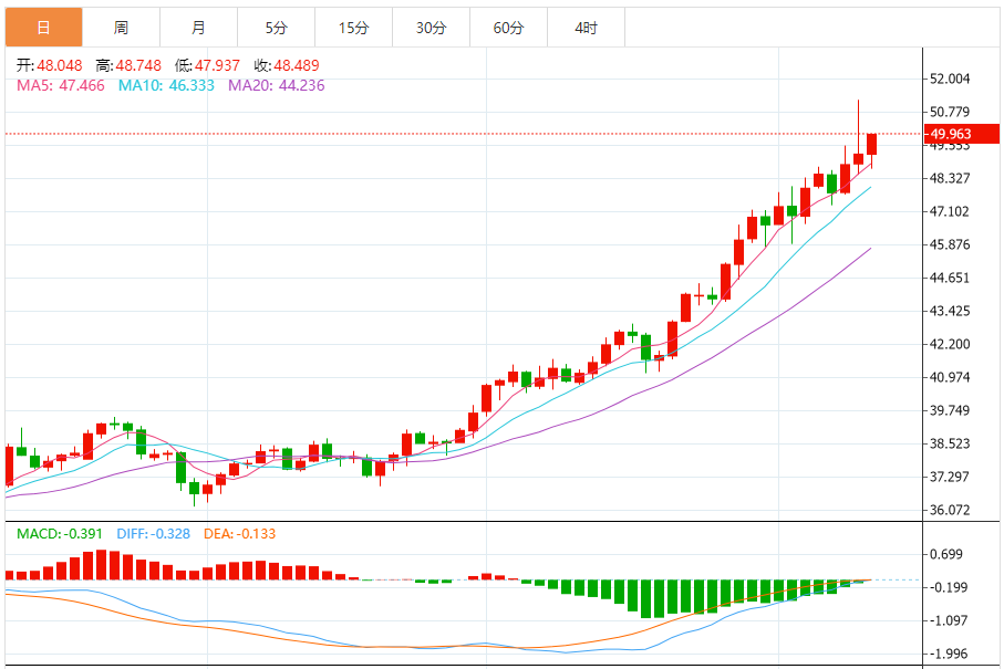 周五(10月10日),现货白银目前位于49.965美元/盎司附近,涨幅为1.49%。