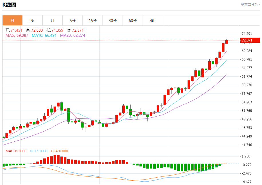 银价(白银/美元)在周三的交易中约为72.05美元,日内上涨0.70%。 白银延续其看涨势头,连续第四天上涨,并在当天早些时候达到72.71美元的历史新高,显示出投资者对贵金属的持续需求。