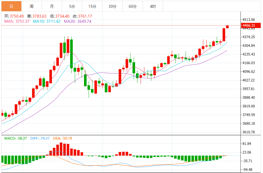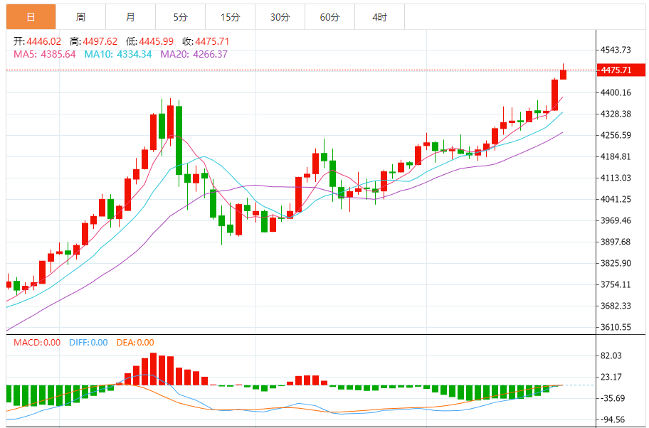 周一(12月22日)纽约尾盘,现货黄金涨2.48%,刷新历史高位至4449.18美元/盎司,全天持续走高。COMEX黄金期货涨2.16%,(在电子交易盘)报4482.30美元/盎司,也创历史新高。