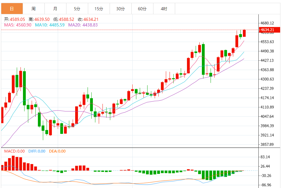 周三(1月14日),现货黄金目前位于4634.24美元/盎司附近,涨幅为1.03%。