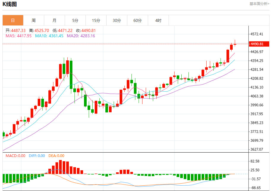 周三亚市早盘,金价一度暴涨至4525.91美元/盎司,创下历史新高,随后金价出现大幅回撤。进入纽约交易时段后,金价再度出现大跳水,金价最低触及4448.08美元/盎司,较日内创下的纪录高位回落逾77美元。随后金价自上述低点反弹,截至周三收盘,金价收报4479.53美元/盎司,日内跌幅0.12%。