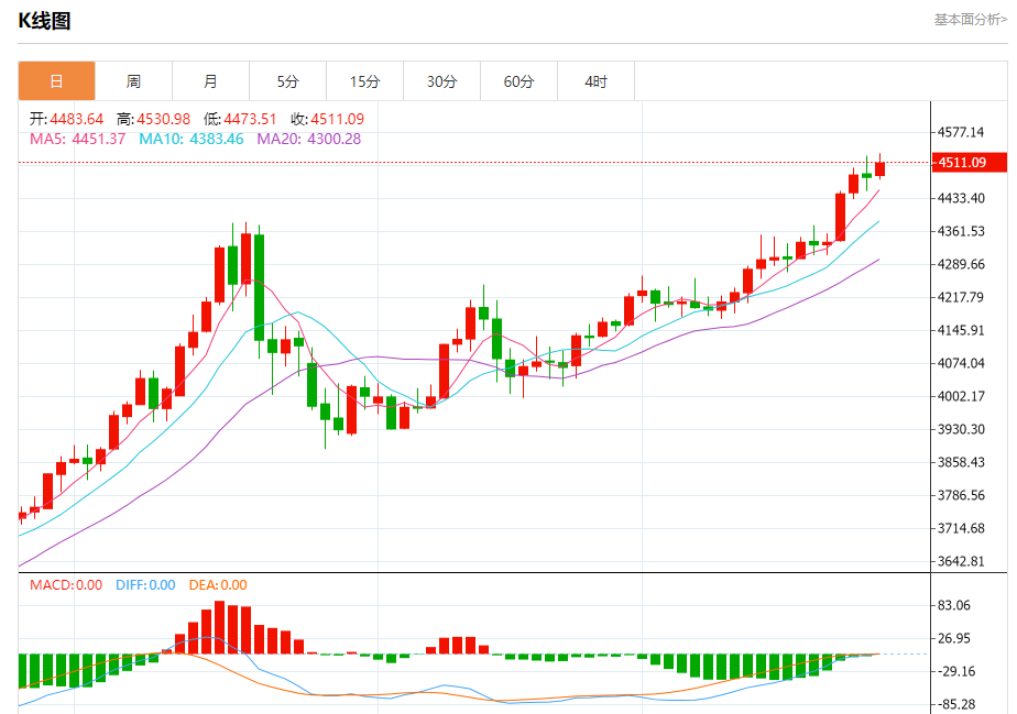 乐观情景:放量突破4532并站稳4500,上攻4550—4575,甚至测试4600。