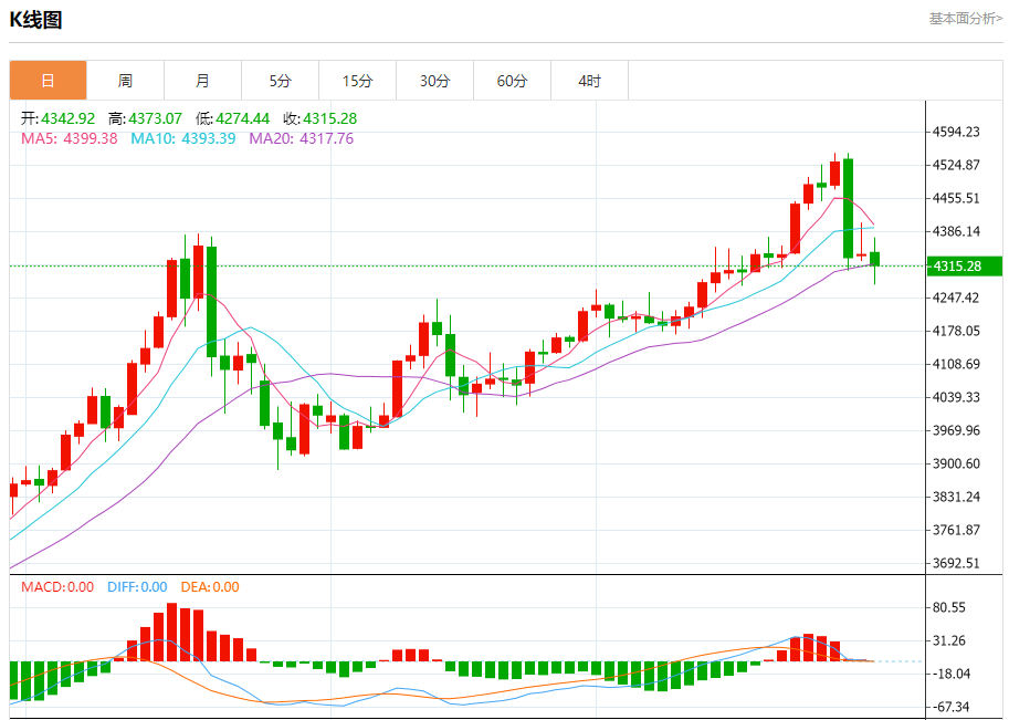 为周一低点、30日均线支撑与下降通道下轨共振位,是短线趋势分水岭:守住则震荡修复,有效跌破(收盘价低于4295)则下探4280-4270,中期调整加速。