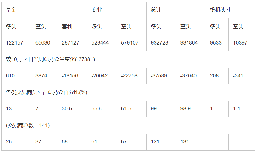 截止10月28日当周洲际交易所(欧洲)原油期货分类持仓报告: