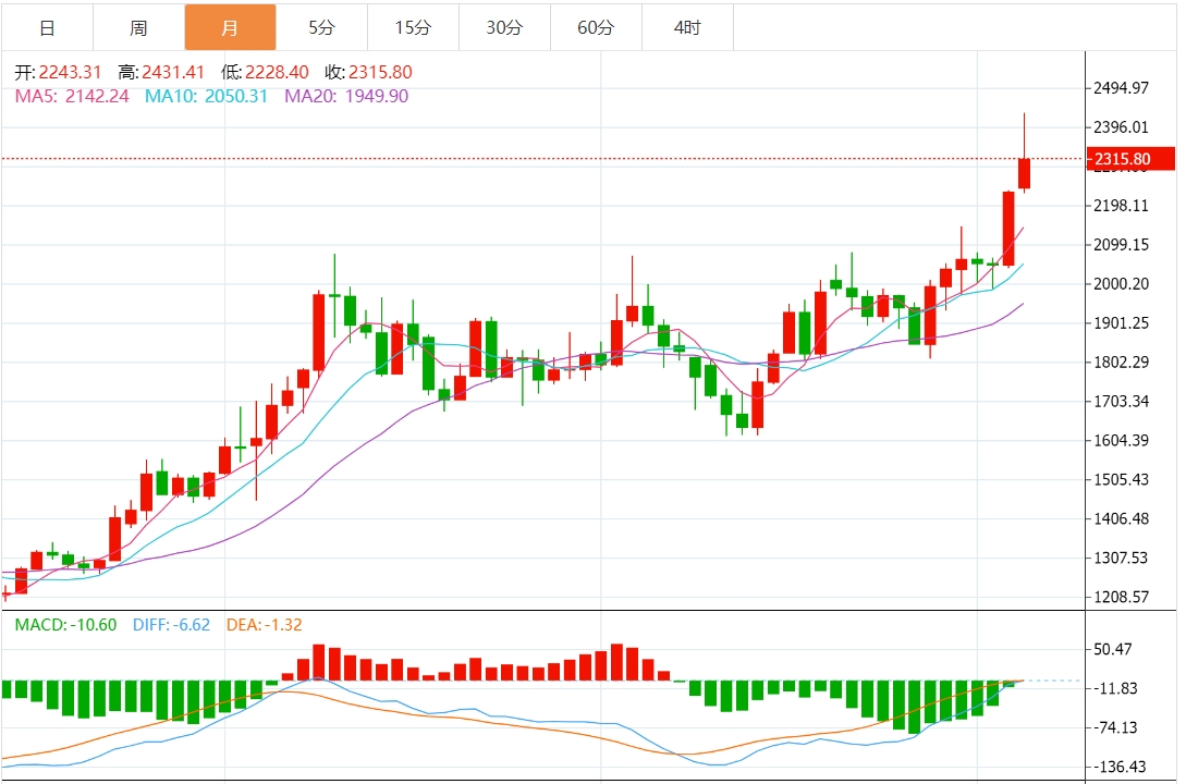 4月黄金市场走势回顾 截止发稿,4月黄金整体呈现上涨趋势,累计涨幅3.63%。4月中上旬,黄金价格维持上涨趋势,一度触及2400美元关口,主要是由于地缘局势紧张引发市场避险情绪,但4月中下旬之后,由于部分地缘政治带来的风险溢价下降,具有避险特质的黄金震荡走低。眼下市场继续关注美联储最新动态以及美国重磅经济数据