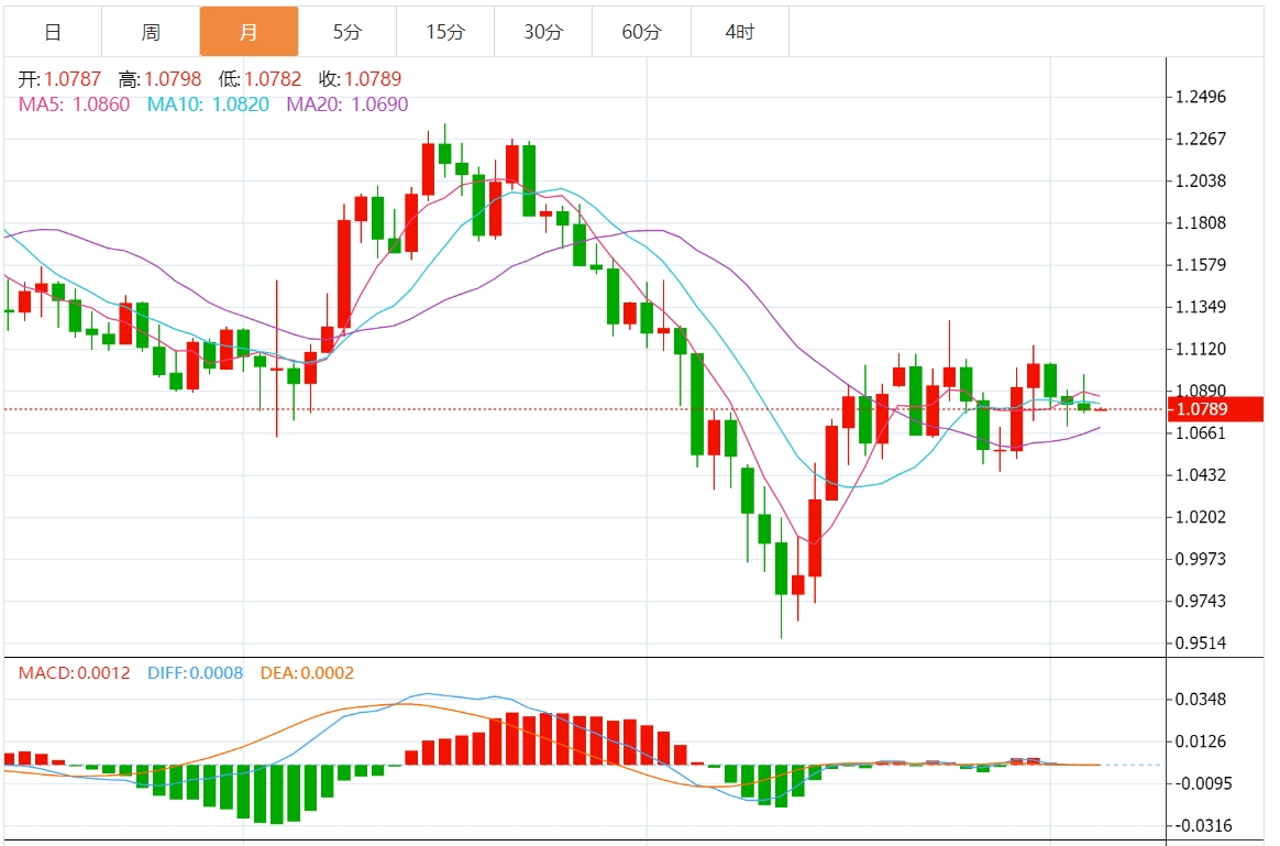 在2024年5月,欧元兑美元的汇率经历了一系列波动。整体而言,欧元在月初表现出一定的韧性,但随着月中一系列经济数据和央行政策声明的发布,汇率走势逐渐偏向美元。截至发稿,欧元兑美元报价1.0806,本月上涨1.31% 欧洲央行首次降息即将出现,但尚难启动长期宽松 在欧洲央行官员不断释放降息信号的情